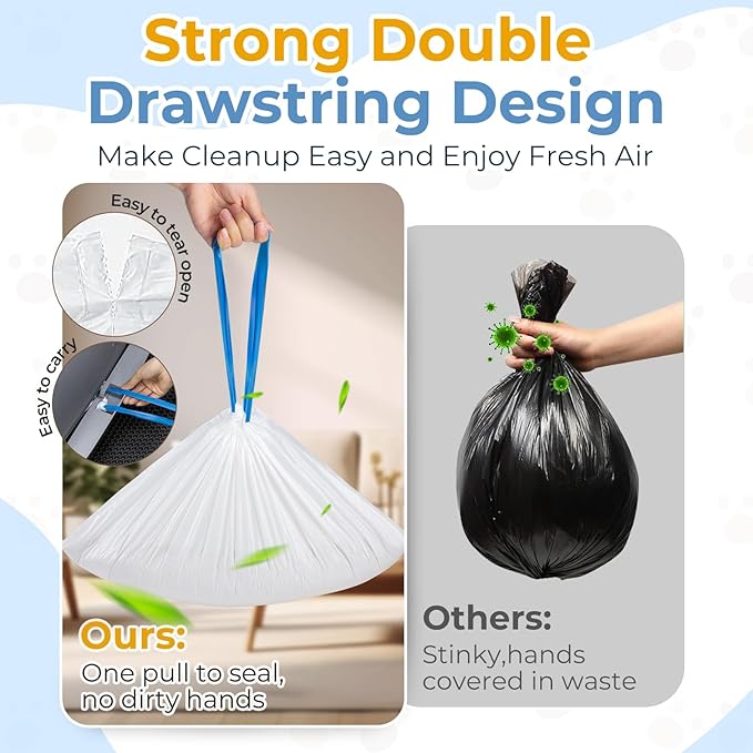 - ⚡ SIMPLE AND EFFICIENT TO USE: These self cleaning litter box bags are incredibly easy to install and empty. A cost-effective alternative to expensive official replacements, their leak-proof dual-drawstring design eliminates the frustrations of poorly designed bags. Just grab, tie, and dispose—keeping your home clean has never been so easy