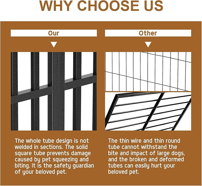 - Premium Materials: Constructed from 20-gauge steel and reinforced with 0.6-inch diameter steel tubes, this 37-inch dog crate offers significantly greater strength and durability compared to traditional wire cages. It provides a secure environment for even the most robust and powerful dogs.