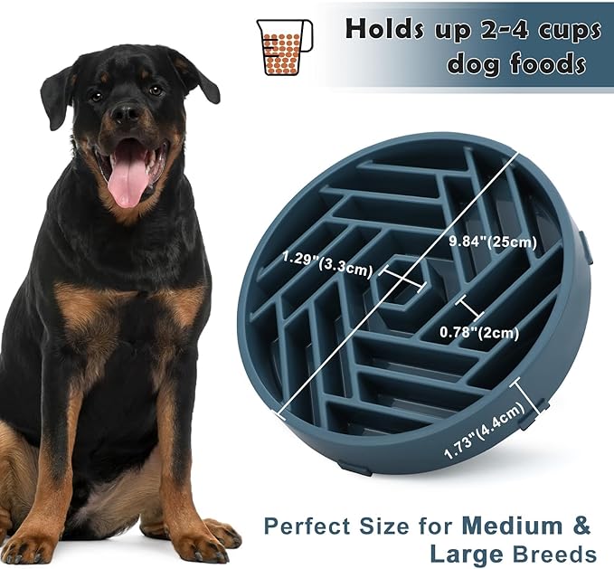 - 【Maze Design to Slow Down Eating】Puzzle dog bowl slow feeder designed with unique labyrinth exploration effectively works to slow down dog’s eating rate, especially for those likely to gobble up. Slow eating dog bowl helps prevent bloating, discomfort, and promotes better digestion, while also encouraging healthier eating habits and reducing overeating