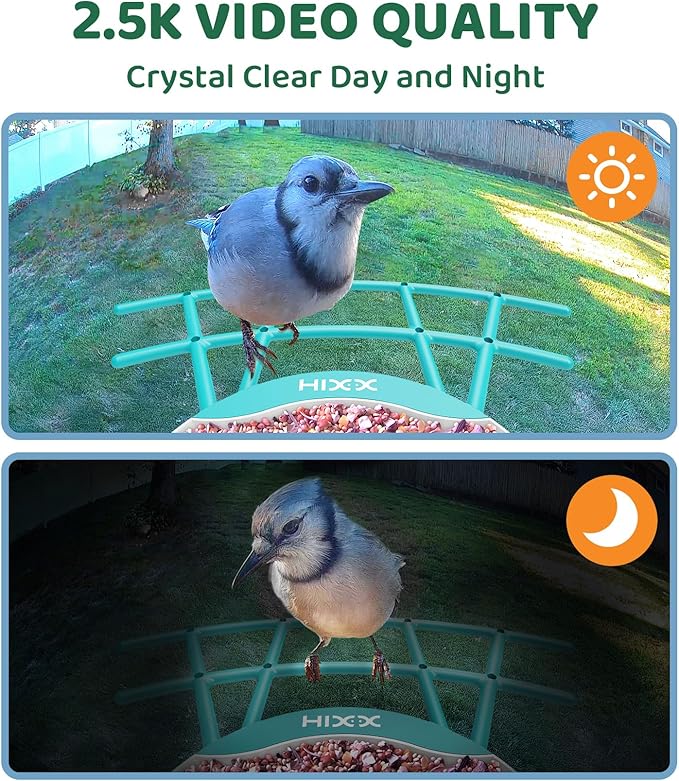 - Stunning 2K HD & Color Night Vision: HIXX camera bird feeder features a 2K HD camera that brings you up close to birds’ lively movements. With a 150° ultra-wide lens, it covers more area effortlessly. The full-color night vision can capture clear pictures even after dark, retaining true color of birds, providing all-day observation