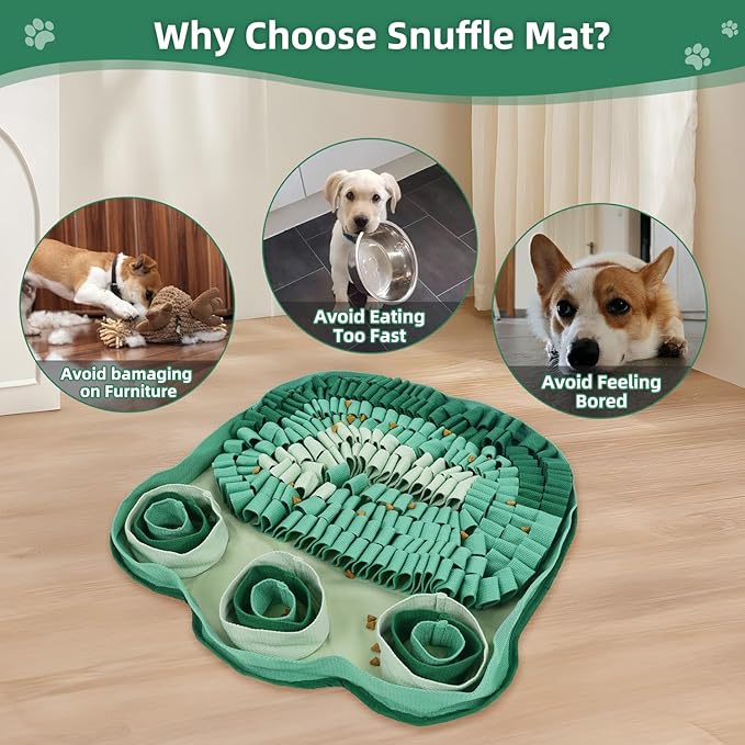 - Slow Feeder: The dog snuffle mat puts the nose and brain of your dog to work by mimicking the hunt for food in nature and keeps them entertained and relaxed. It is necessary for dogs that eat too fast