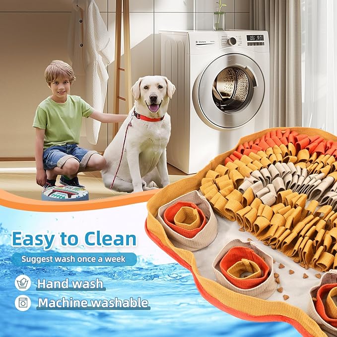 - Rich Feeding Game: The dimensions of the dog food mat are 19.2 x 19.2 inches, suitable for the vast majority of dogs. This dog puzzle mat is very easy to clean! It is machine washable