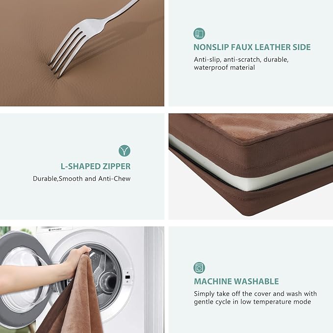 - Faux leather reversible design: The two-sided design indestructible dog bed features ultra soft cozy flannel with a reverse side of cooling durable anti-scratch anti-slip faux leather, which keeps your fur baby cool in the summer and warm in the winter. The flat dog mattress design provides dogs and cats plenty of room to sleep or stretch out