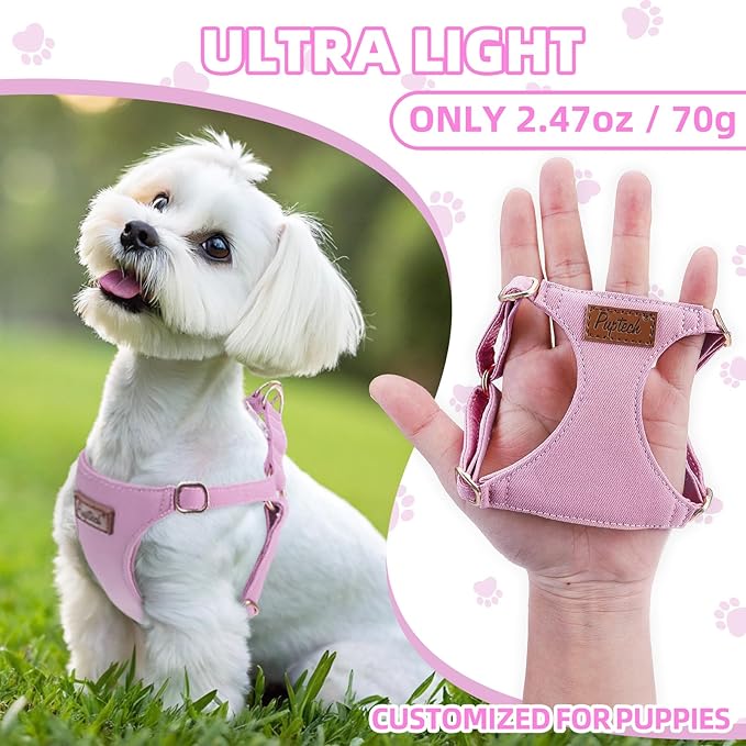 - CUSTOMIZED FOR PUPPIES: This adjustable puppy harness suits small dogs or cats. It fits perfectly on the dog's body. It is lightweight and non-burdensome. It is recommended that you measure your dog's chest girth before ordering and leave two fingers of space. (Four sizes are available: XXS, XS, S, M. Please refer to the size chart to choose a suitable one)