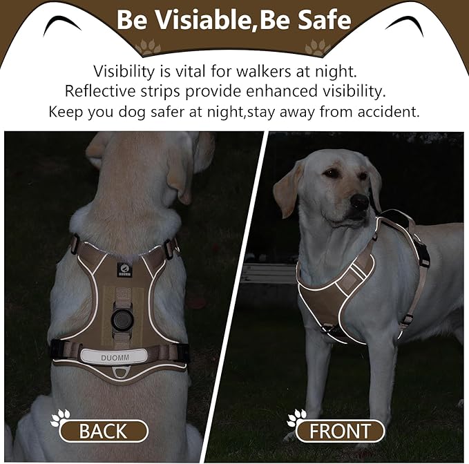 Dog Harness No Pull with Airtag Holder, Reflective Adjustable Vest with Handle for Large Dogs, Escape-Proof and No Choke, Ideal for Training, Walking & Hiking (Khaki, L)