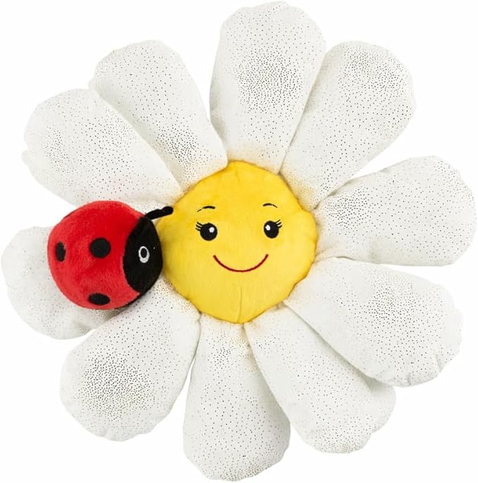 Flourish Pets 3 in 1 Multi-Layer Chew Toy for Active Dogs | Non-Toxic BPA Free Double Stitched Soft Fabric Exterior Dog Toys | Long-Lasting Dog Plush Toys - Large White Daisy 17"