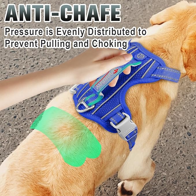 BARKBAY No Pull Dog Harness Large Reflective Dog Harness with Front Clip and Easy Control Handle for Walking Training Running with ID tag Pocket(Sapphire Blue,S)