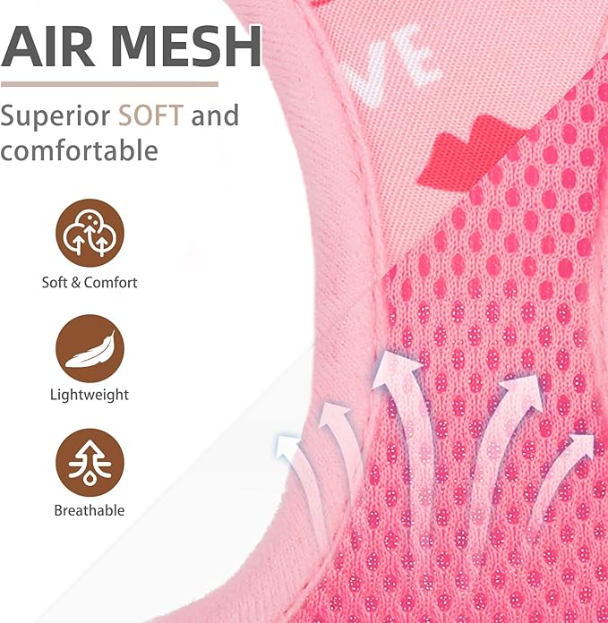 PUPTECK Adjustable Dog Harness Collar and Leash Set Step in No Pull Pet Harness for Small Medium Dogs Puppy and Cats Outdoor Walking Running, Soft Mesh Padded Reflective Vest Valentine Harnesses