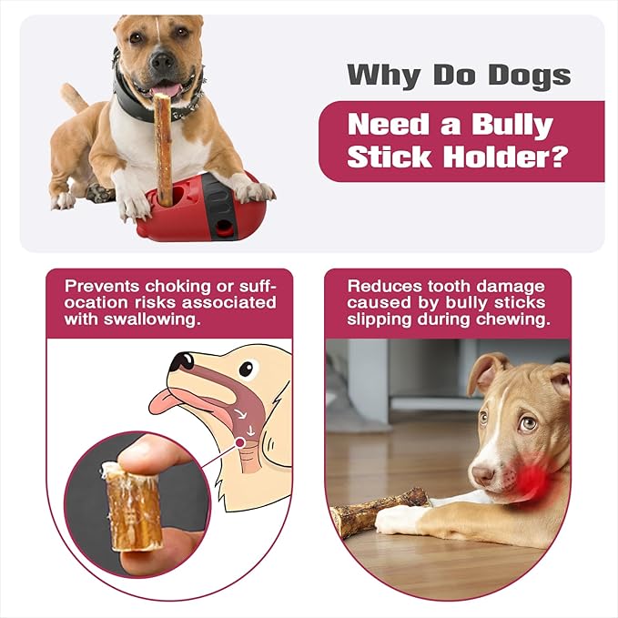- 🐶Dog-Attracting Design 🐕This is a multifunctional dog toy that serves as a bully stick holder, preventing choking and blockage risks during chewing sessions, bully stick holder significantly reducing choking hazards, It also functions as a pet food dispensing toy, releasing food as dogs push or move the toy during play,a mentally stimulating toy for dogs.