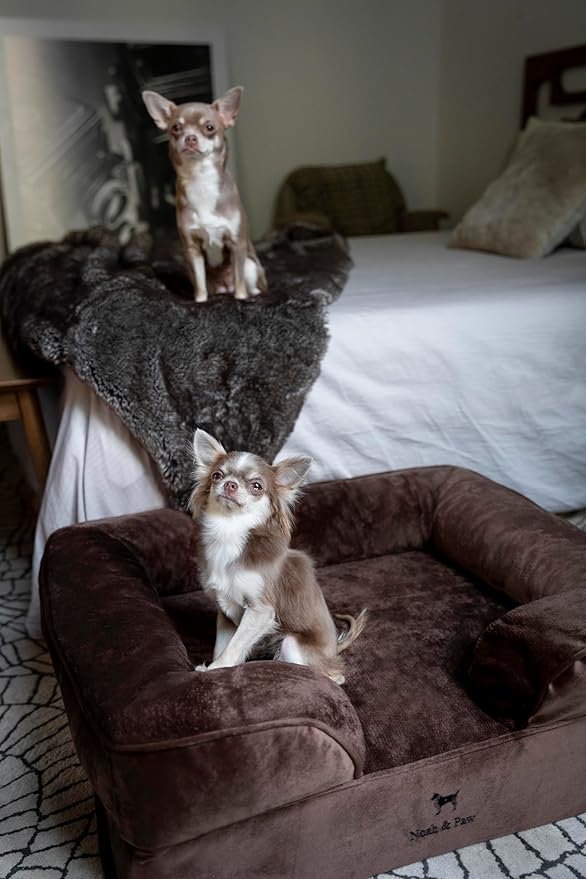 NOAH & PAW Dog Bed, 28x23x11 Inch, Orthopedic Dog Beds for Medium Size Pets, Eggshell Memory Foam Infused with Cooling Gel, Inner Cover, Waterproof, Machine Washable (Velvet Sofa Collection)