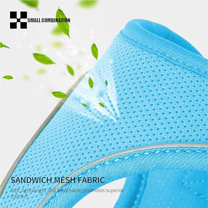 Adjustable Dog Harness with Leash, Reflective Mesh, No-Pull Design,Matching Lead Rope (SkyBlue, M)