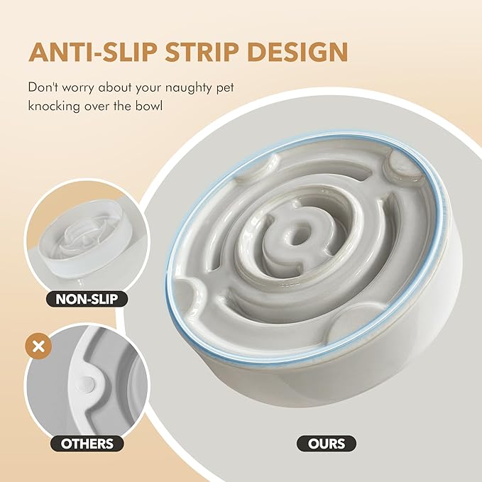 - Stable and Non-slip: Heavy duty ceramics blow with Anti-Slip strip at the bottom of the dog bowl to prevent bowls from sliding and overturning. It can also prevent food from spilling on the ground.