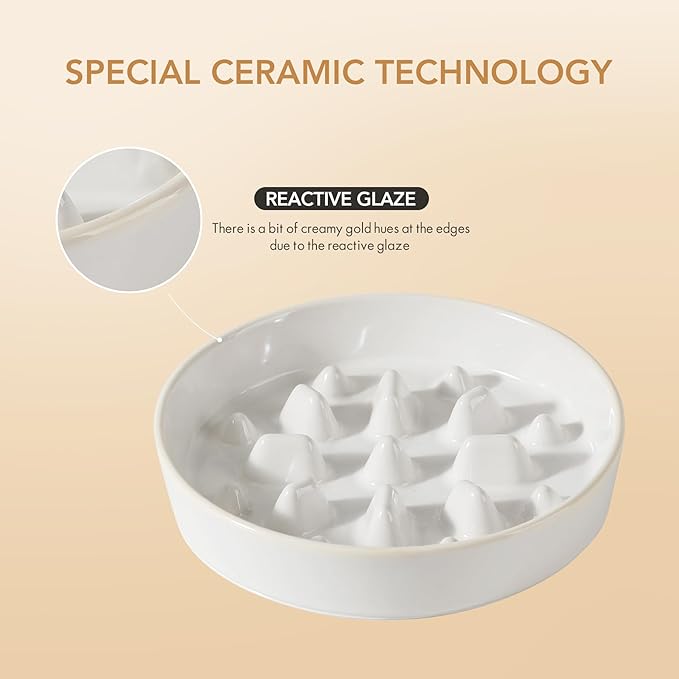 - Healthy Ceramic and Unique Design: Our bowls are made of ceramic material. Ceramic bowl is safe and healthy, lead-free, non-toxic, harmless and durable. According to investigations, plastic bowls are likely to cause black jaws. What's more, our pet bowls feature a reactive glaze which has a beautiful luster and is unique.