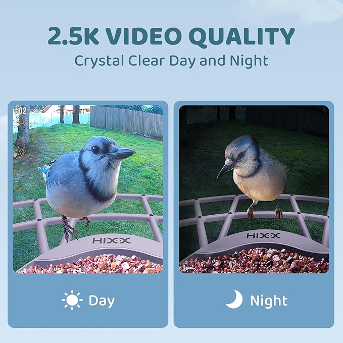 - Stunning 2K Color HD & Color Night Vision : Get Yours Now & Start Your HD Birdwatching Journey! HIXX HiCIRCLE video bird feeder features a 2K HD camera that brings you up close to birds’ lively movements, capturing fine feather details or tiny birds in action. With a 150° ultra-wide lens, it covers more area effortlessly - no angle adjustments needed! The full-color night vision can capture clear pictures even after dark, retaining the true color of objects, providing all-weather observation