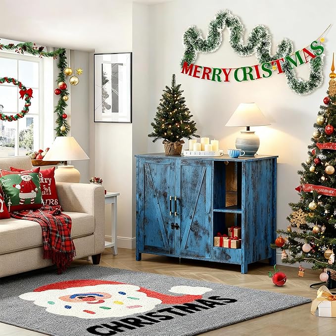 Large Cat Litter Enclosure With Litter Collector, Enclosure for self-Cleaning Litter Boxes,Adjustable Shelf for Dog Proof and Storage,charging station,Locks Added for cat,Cat House,Blue