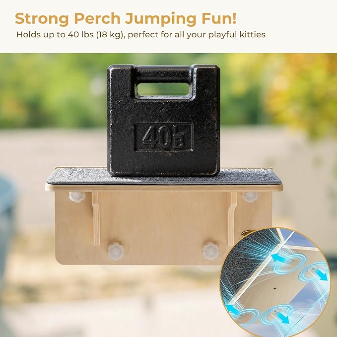 - 【SAFE AND RELIABLE CAT PERCHES】Our cat window seat uses upgrade extra-large, high-strength rotating suction cups for a superior grip. This cat window perch stays secure even during your cat’s wildest jumps, maximizing vertical space and offering a perfect mix of safety and fun for playful cats and kittens