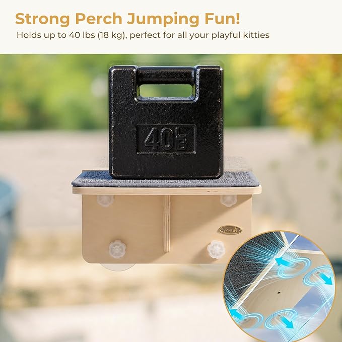 - 【SOLID WOOD CAT SHELVES】Made from thick birch wood with multi-layer cross-grain construction,pecute cat window perch resists warping, cracking, and distortion, standing up to the sun and wind. The sturdy frame, reinforced with right-angle support, ensures stability and safety, holding up to 40 lbs