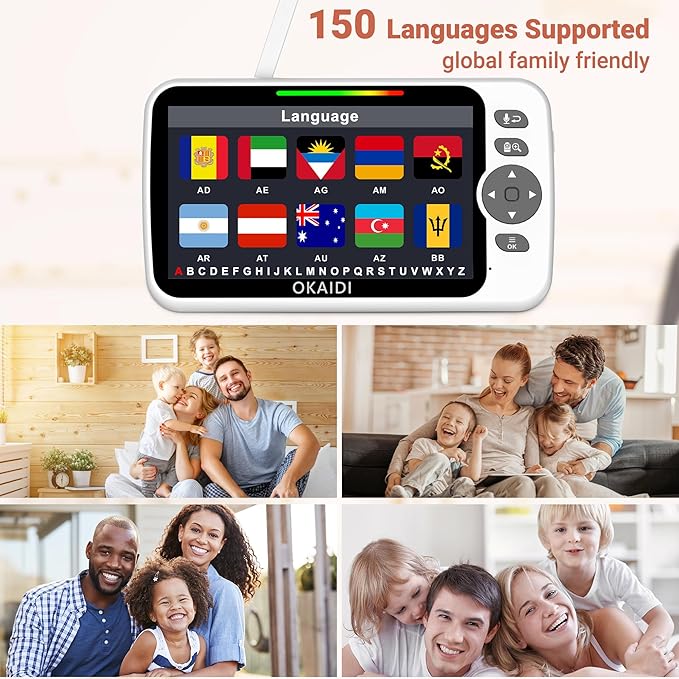 - Multi-Functional Baby Monitor:Our Baby Monitor Features a Two-Way Talk Function, Enabling Clear Communication with Your Baby as if You Were in the Same Room. It Includes Room Temperature Monitoring with Alerts, 8 Soothing Lullabies, Sound Level Led Indicators, an Audio-Only Power-Saving Mode, and Tabletop or Wall Mounting Options. The Feeding Timer Ensures Timely Nighttime Feeds. Supporting 150 Languages, It’s Designed for Global Parents to use Effortlessly in their Native Language. It Combines Convenience, Functionality and Comfort, ideal for Baby Register and New Parents.