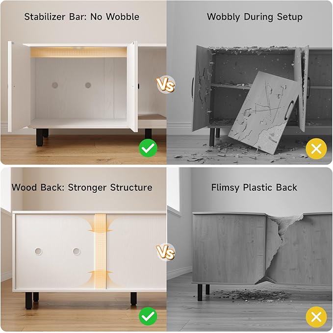 - The magnetic double-door design simplifies daily cleaning and litter replacement. Our double-cage cat litter cabinet features well-designed entrances that ensure easy access for your cats while promoting proper ventilation and lighting inside!