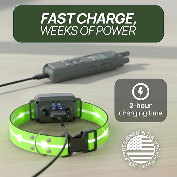 - RECHARGEABLE & ECO-FRIENDLY BATTERY: Equipped with a built-in rechargeable lithium battery (300mAh capacity, 6.0mm x 20mm x 30mm dimensions and a voltage of 3.7V), this dog training collar offers long-lasting power and reliable performance. Both the receiver and remote are fast charging in just 2 hours, providing up to 35 days of standby time for the receiver and 45 days for the remote.