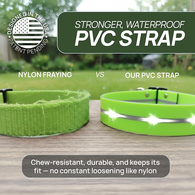 - ADJUSTABLE FOR ALL DOG SIZES: The adjustable collar strap fits neck sizes from 7.5 to 24 inches (10–120 lbs), ensuring a secure yet comfortable fit for small, medium, and large dogs. Designed in the USA with your dog’s safety and comfort in mind.