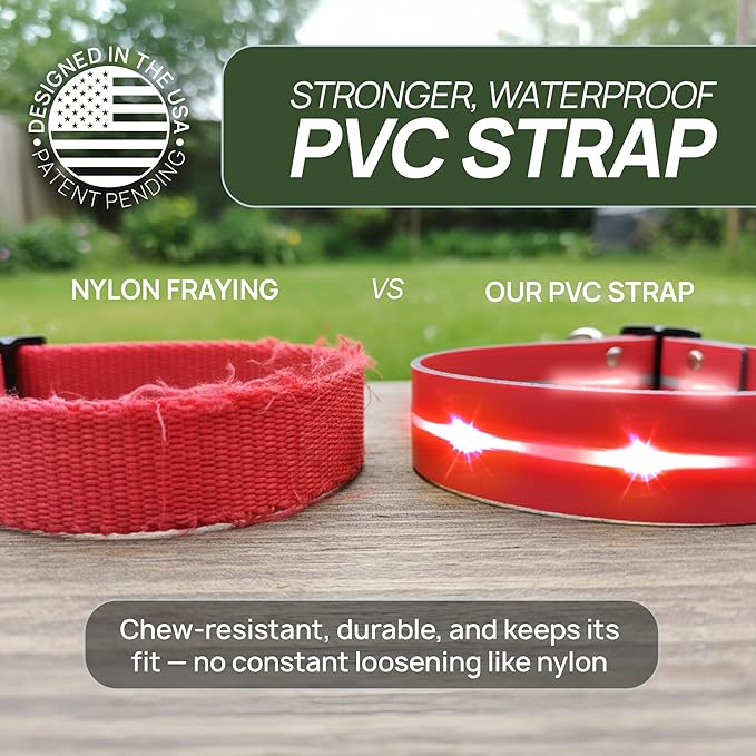 - VERSATILE TRAINING & SAFETY: Easily switch light modes or correct unwanted behavior with 4 humane training options: beep, vibration, shock, and shock boost – keeping your dog visible, well-behaved, and safe in any environment.
