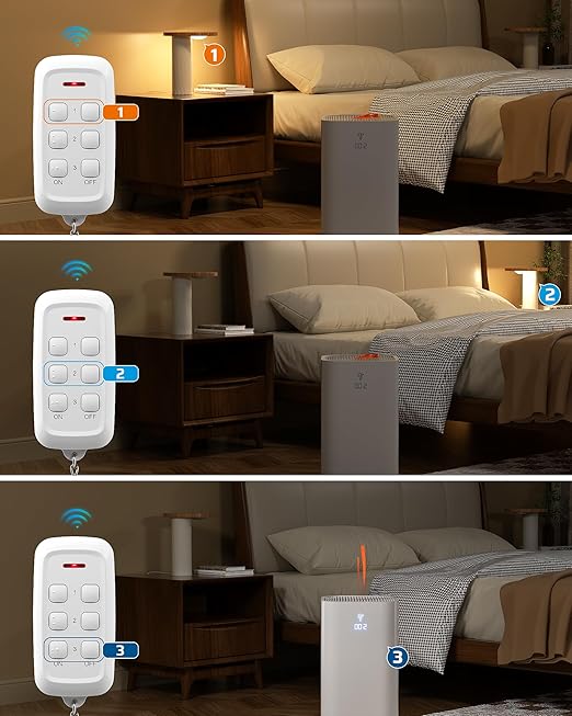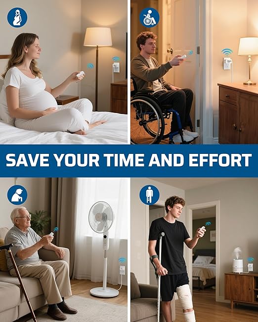 - [Wide Compatibility] Rated at 125V, 60Hz, 15A, 1875W resistive, this remote outlet switch works with most household electronics, great for lights, fans, chargers, heaters, Christmas decorations, and more, delivering stable and reliable performance for everyday use