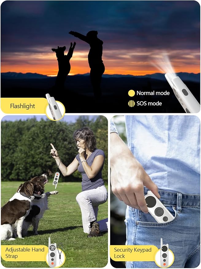 • 【Security Keypad Lock&LED Light】The keypad lock is specially designed for the safety of dogs, which can effectively prevent accidental misoperation and give wrong instructions to dogs.The dog training remote is also equipped with two flashlight lighting modes so that you can quickly find your far-away dog in the dark.