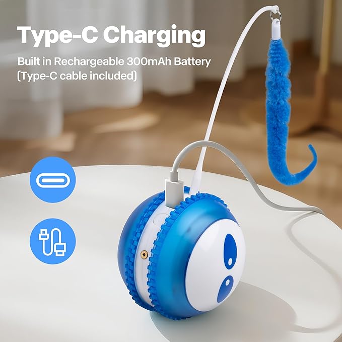 - Long-lasting Rechargeable Battery: With just a quick 1.5 hours charge,this chirping automatic cat ball toy provides up to 4 hours of continuous use,no need to frequently change batteries.It's also very conveninent to use,enjoy longer playtime with our toy