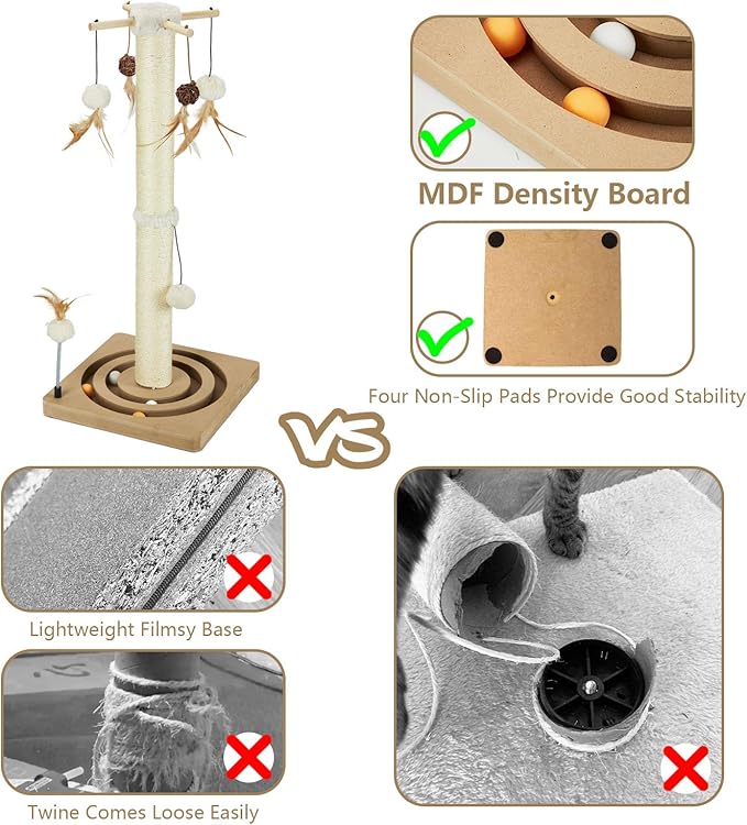 - Steady and Unwobbly:The base is made of MDF density board and is 1.2 inches thick.Provides higher reliability and stability.It's safe for your cat to use