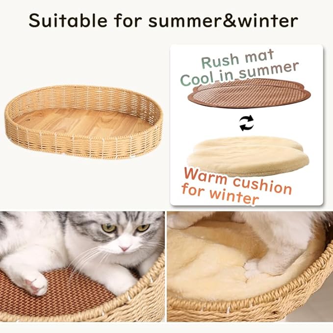 - 【3 Hand-Woven Rattan Baskets with Cushions】 Each cozy perch is a breathable rattan cat bed with a soft, removable cushion. Cats love the comfort; humans love the clean, earthy look.