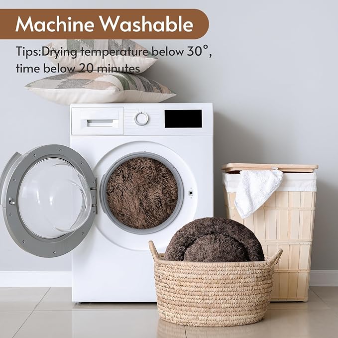 - Effortless Care & Home Decor Match: Machine Washable for easy care. Simply toss the entire bed into the washer (Gentle Cycle) to keep it fresh. Designed in premium neutral hues, this donut pet bed blends seamlessly with any room, elevating your living space while offering a hygienic spot for your pet