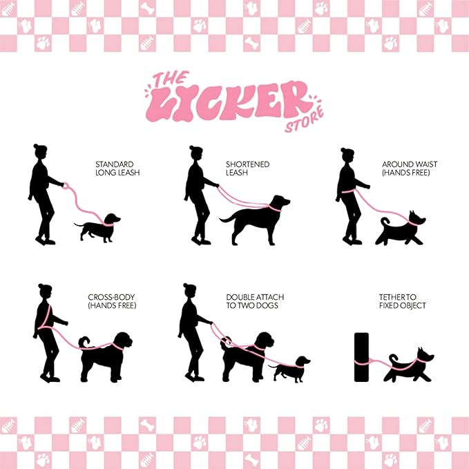 - Unique design adjusts to a standard hand-held leash, shortened leash, crossbody leash, around-the-waist leash, double leash, and can even be tethered.