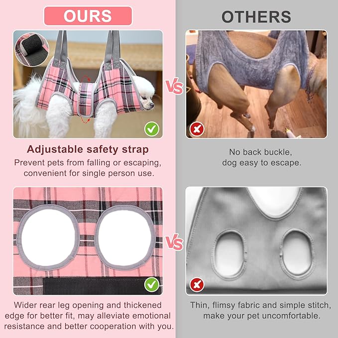 BEAUTYZOO Dog Grooming Hammock for Small Dogs Cat- Dog Sling for Nail Trimming/Clipping- Dog Hanging Harness Holder with Thick Fabric Neck Support & Strap Restraint Claw Care, Pink M