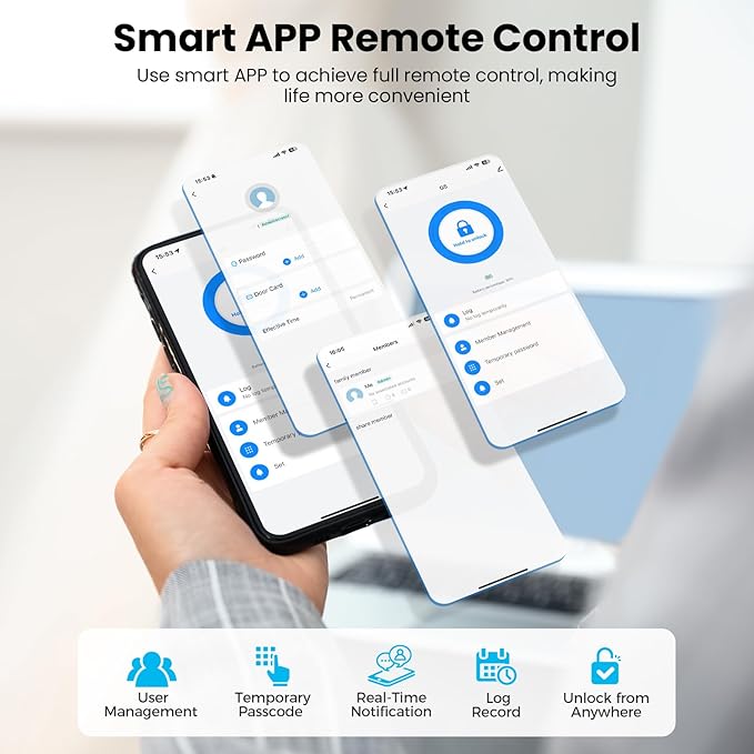 DEVO G8 Smart Lock, 6-in-1 Fingerprint Keyless Entry Door Lock with Doorbell, Built-in Wi-Fi, APP Remote, Auto-Lock, Front Door Smart Deadbolt, Easy Install, IP54 Waterproof