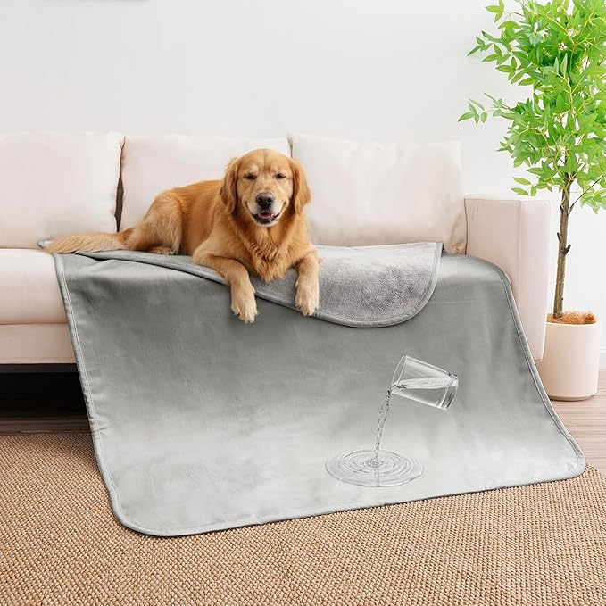 Waterproof Dog Blanket for Large Dogs, Leak Proof Pet Throw Couch Blankets Reversible Sofa Bed Furniture Protector Machine Washable- 40"x50",Lightgrey+Darkgrey