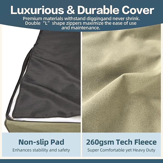 - Pet Safe Materials: Certified for safety and comfort, this dog bed features CertiPUR-US certified memory foam and OEKO-TEX standard 100 technical fleece, creating a secure and luxurious resting space. The non-skid bottom adds stability, preventing slips and ensuring your dog’s safety.
