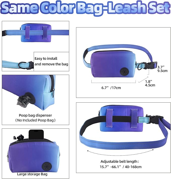 - 【Removable Zipper Pouch】The waist leash for dog walking NEW ADDED with a large zipper pouch in size: 6.7"*3.7"*1.8", large enough to carry treats, poop bags, keys, and your phone HANDS-FREE. The Pouch securely to the belt—ideal for joggers, road trips, or daily walks. Coordinates with bungee leash colors for stylish functionality also.