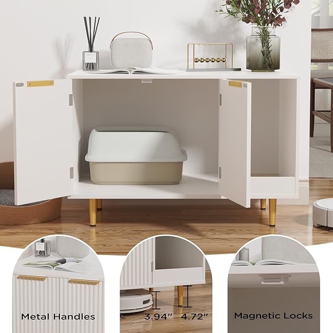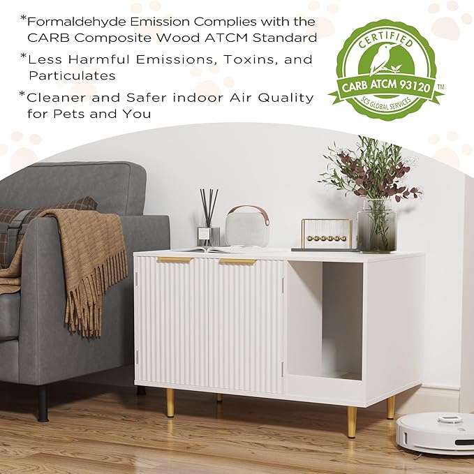 - 【Sturdy & Reliable Construction】 - Equipped with magnetic devices for easy opening and closing and crafted from CARB/EPA certified sturdy wood, this modern litter box has a top load of up to 132 pounds, which is stable and reliable, and will keep your pet with you for a long time without fear of your cat's mischief.