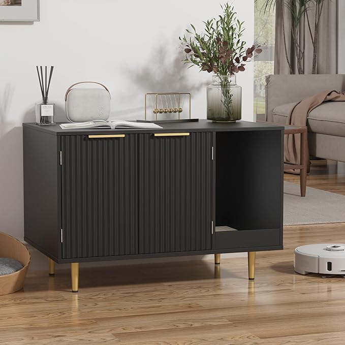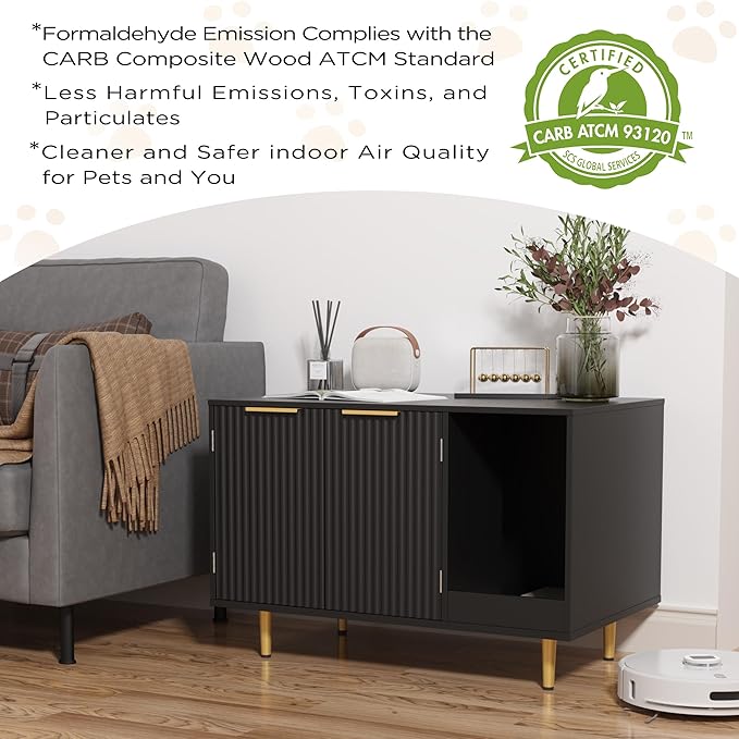 - 【Sturdy & Reliable Construction】 - Equipped with magnetic devices for easy opening and closing and crafted from CARB/EPA certified sturdy wood, this modern litter box has a top load of up to 132 pounds, which is stable and reliable, and will keep your pet with you for a long time without fear of your cat's mischief.
