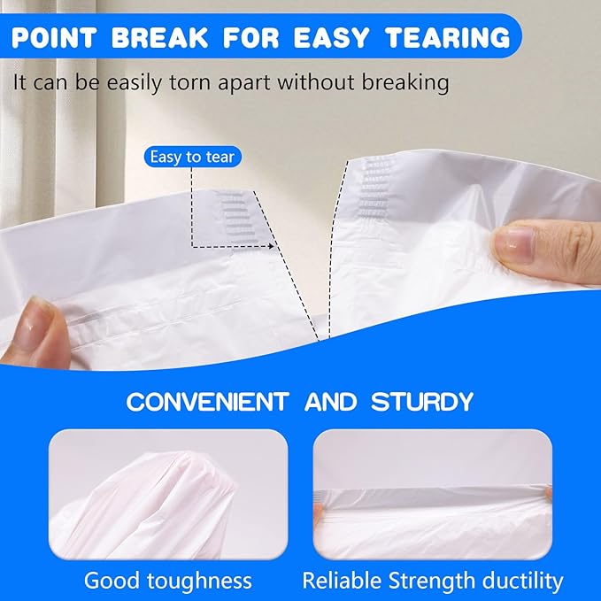 - Breakpoint Design for Easy Use: Each pack features a breakpoint design, allowing you to tear off one litter box liner easily at a time without any hassle. This design ensures a quick and efficient cat litter bags change, making it more convenient and user-friendly