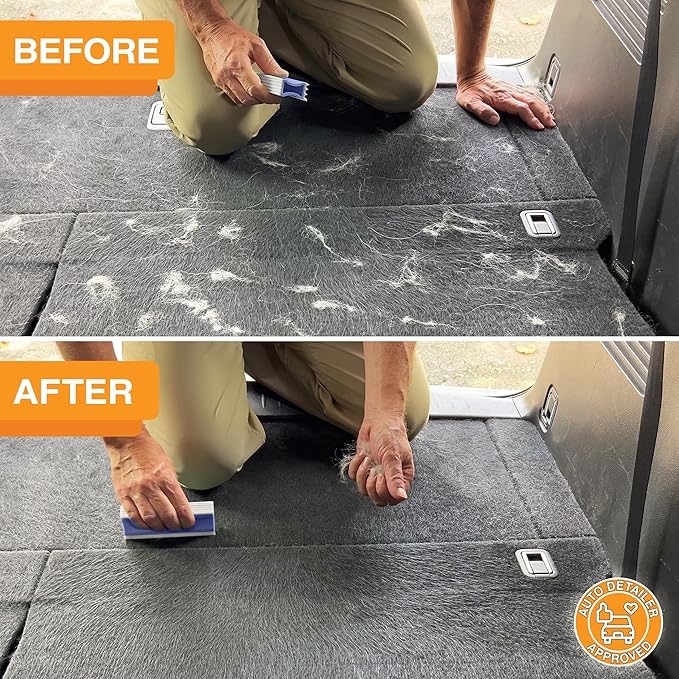 - 6 TOOLS IN 1 & MADE IN THE USA: The FurDozer dog and cat hair remover has 3 different squeegee blades, 2 textured pads, and 1 crevice tool. Having all these different edges makes the FurDozer your all-in-one pet hair removal tool and car detailer. The FurDozer is designed and MADE IN THE USA!