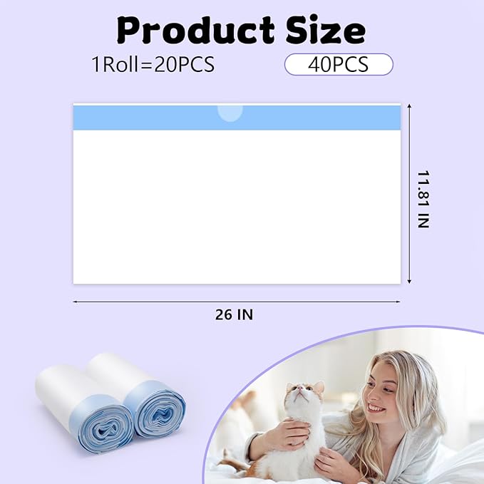40 Count 26" x 11.8" Cat Litter Box Liners for Fsitego and Fumoi Self Cleaning Litter Box, Extra Thick Heavy Duty Cat Litter Bags Replacement, 3-4 Gallons of Capacity
