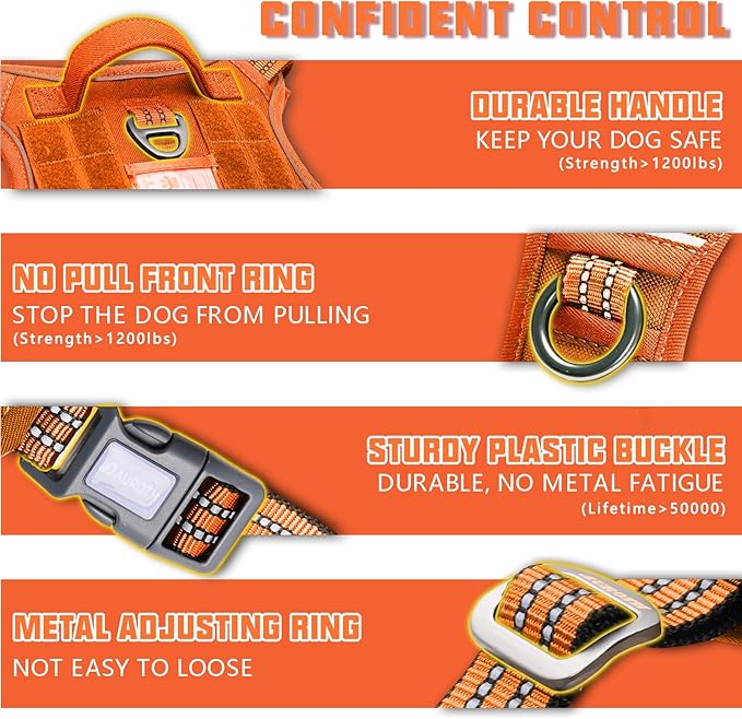 AUROTH Tactical Dog Harness for Large Dogs No Pull Adjustable Pet Harness Reflective K9 Working Training Easy Control Pet Vest Military Service Dog Harnesses Orange S