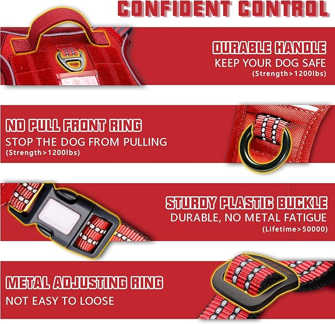 AUROTH Tactical Dog Harness for Large Dogs No Pull Adjustable Pet Harness Reflective K9 Working Training Easy Control Pet Vest Military Service Dog Harnesses Red XL