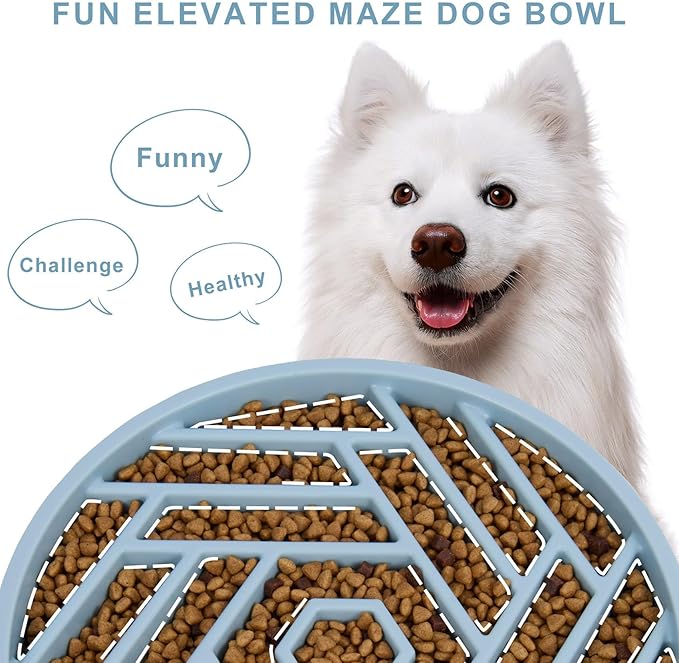 - 【Maze Design to Slow Down Eating】Puzzle dog bowl slow feeder designed with unique labyrinth exploration effectively works to slow down dog’s eating rate, especially for those likely to gobble up. Slow eating dog bowl helps prevent bloating, discomfort, and promotes better digestion, while also encouraging healthier eating habits and reducing overeating