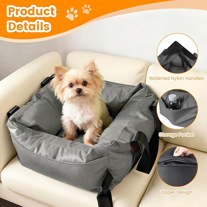 - [Multi-functional dog bed]: When you go out, this pet booster seat can not only be used as a car seat for your dog, but also as a fashionable portable pet bag. You can carry it by hand or on one shoulder. Its wide shoulder strap is made of high-quality nylon, which won't pinch your hands or shoulders. The length can be adjusted to reduce your burden and make it easy to take your pet anywhere. At home, This pet seat can serve as a comfortable dog bed.