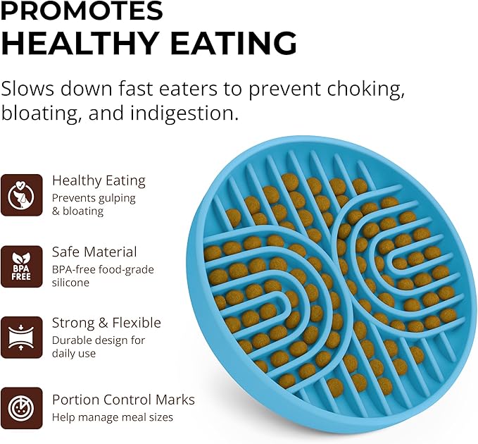 - DURABLE FOOD-GRADE CONSTRUCTION - Crafted from high-quality silicone that's completely food-safe. This dog slow feeder bowl withstands daily use and repeated washing while maintaining its shape and effectiveness for years of reliable service.