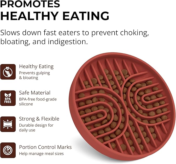 - DURABLE FOOD-GRADE CONSTRUCTION - Crafted from high-quality silicone that's completely food-safe. This dog slow feeder bowl withstands daily use and repeated washing while maintaining its shape and effectiveness for years of reliable service.