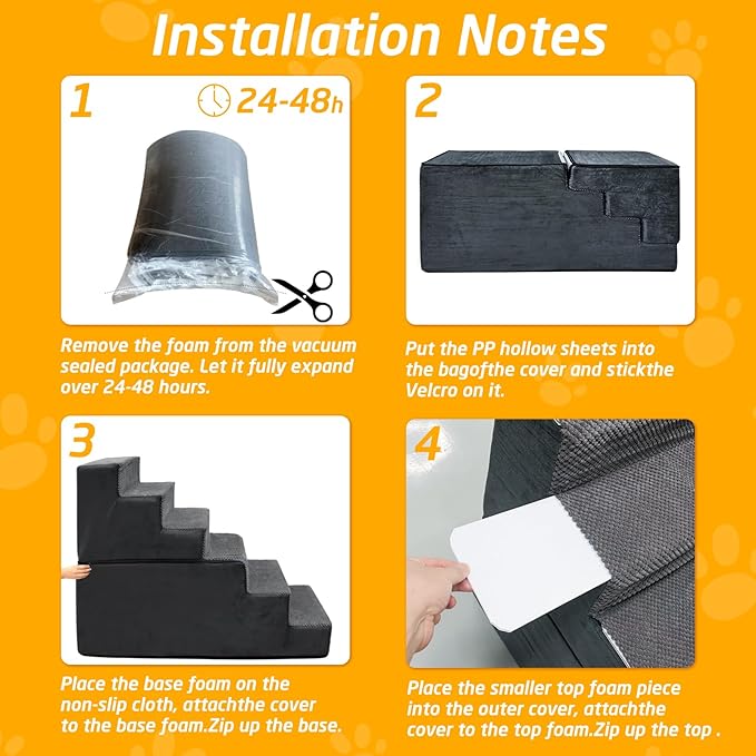 - ⚠️ Note: The dog stairs are compressed, so it usually takes 48 hours to return to its original state after removing the foam from the compression bag‼ ️